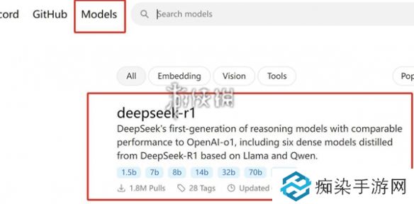 6、接着回到刚刚的网站,点击菜单栏Models,然后找到deepseek-r1并点击进入。