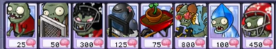 5、土豆地雷和辣椒地雷可用便宜的僵尸,进攻时可使用铁栅门僵尸在前方抵挡伤害。