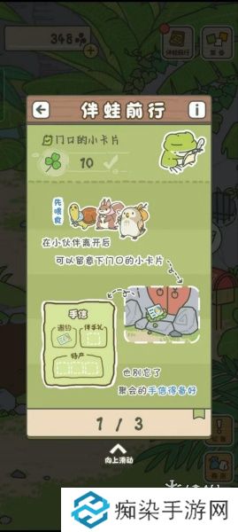 2、月度食物:每个月完成6个任务会获得月度食物,让青蛙携带月度食物出门可获得月度限定照片。