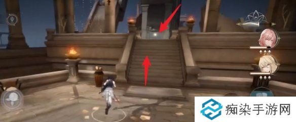 2、视角向后转,从楼梯上去可以看到一个光点。