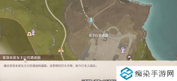 1、先传送到菲洛米亚女王行宫遗迹前,向东南方向前进。