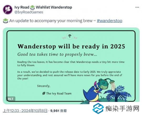10月8日,以改变和茶饮为核心的叙事类“佛系”/治愈型游戏《漫游驿站》(Wanderstop)宣布将延期至2025年发售,该作原定于2024年在PS5和PC上推出,官方给出的延期理由是需要更多时间来完成游戏,预计年底前将发布更多详细信息。